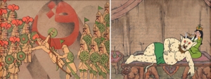 At 15:00 hours on Saturday 21 Rabi‘-os-Sani 1318 / 18 August 1900 / 27 Mordad 1279, greeted by the cheering crowd, the Shah and his entourage appeared in the royal loge and, after he was presented with three flags, the carnival began Corilin, Badaye‘-e Vaqaye‘, p. 108..