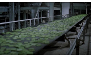 Food rations transported in an assembly line in Richard Fleischer’s 1973 movie, Soylent Green.