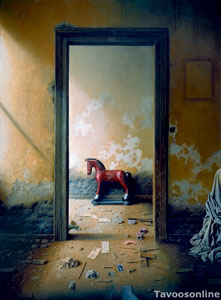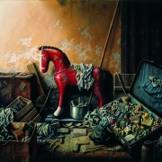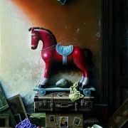 “In fact, nearly 80 percent of what you see in my paintings is mental. I always run a contest with my power of imagination and try to draw objects mentally. When facing obstacles then I use a photograph or the real object. Many objects of my works come from the past. Like the red horse of my early childhood which I often have reproduced.”