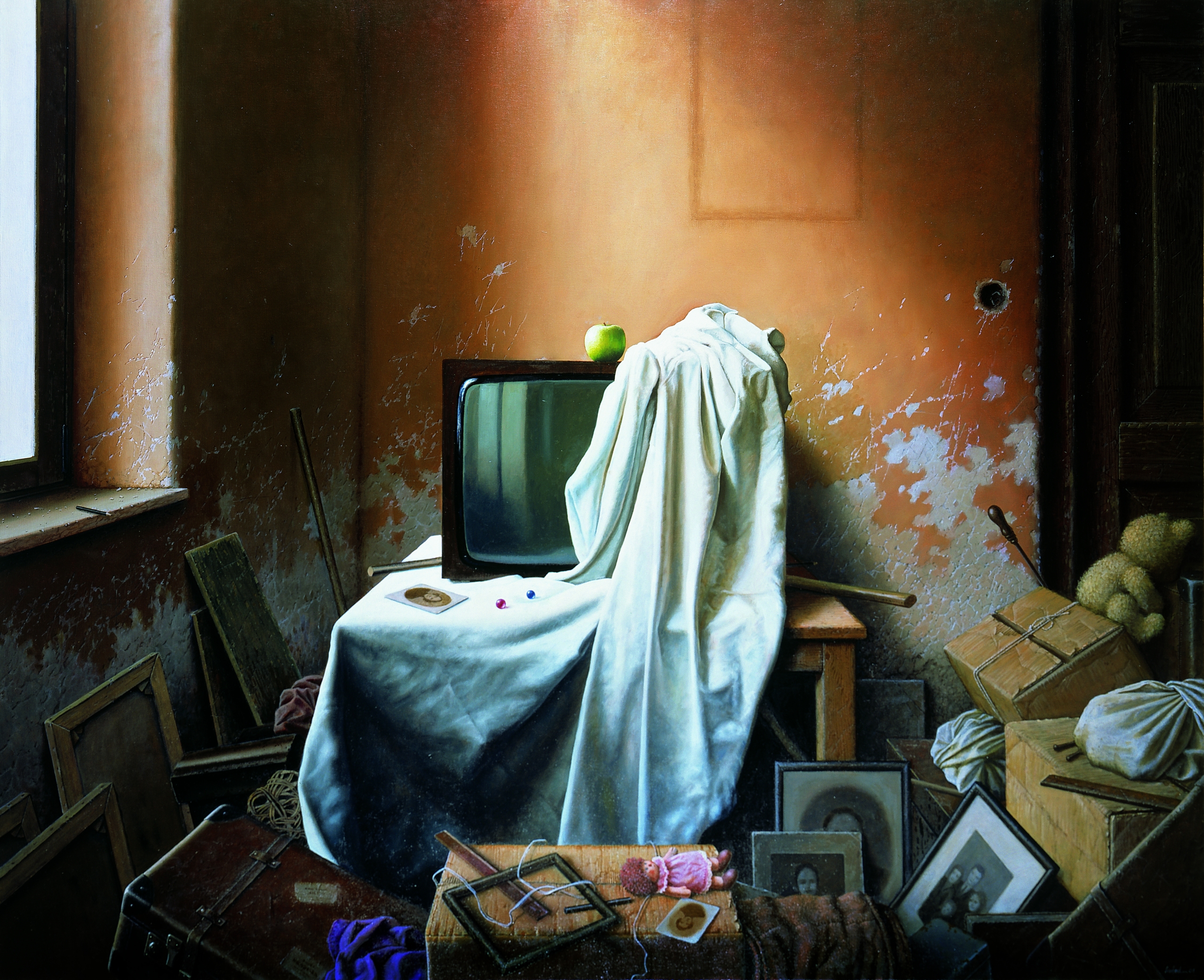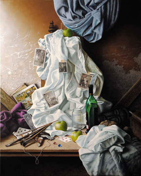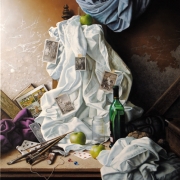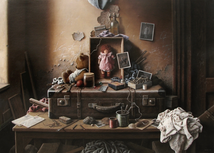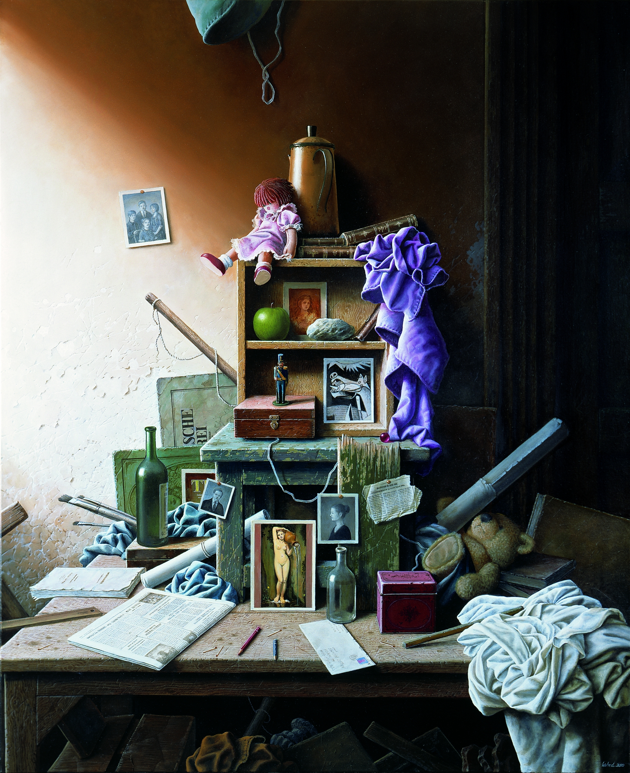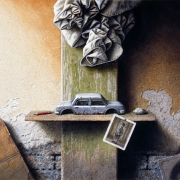 His still life-s attracts interest in Germany; childhood, the evanescence of time, the ephemeral nature of objects and men, abandoned places and objects, and, most importantly, the play with the history of art… are the main characteristics of these still life-s. Some of his works of this time are printed by prestigious German publishers in high quality, numbered, signed and sold. He also gets involved in book-illustration: ”About a year after my settlement in Germany, I came to know a famous German author who wrote books for children. When he saw my works, he proposed to illustrate one of his stories. This was the beginning of my activity in this field and after working with several great German publishers, I became also known as children and young adults book—illustrator and book—cover designer. But this was really like a second profession. I also worked in stage and costume design as I believe that one should use one’s artistic talents and abilities in any art-fields when is one gifted with them.”